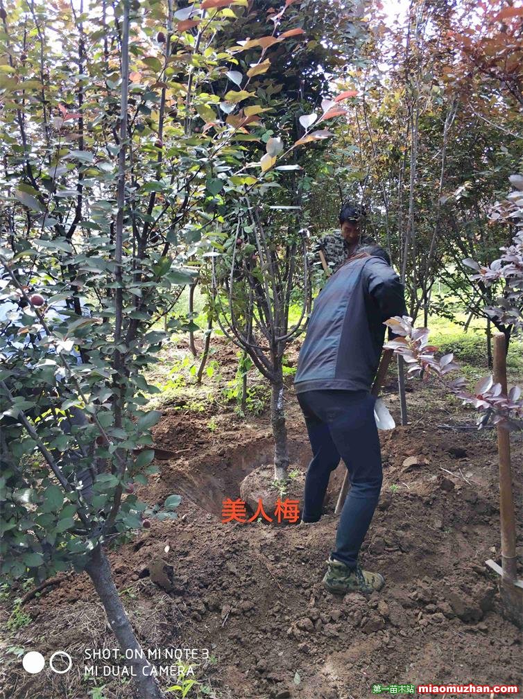 帥意苗圃種植中心位于美麗的泰山腳下交通便利,有600畝美人梅無病蟲害樹干端正, 美人梅(學名:Prunus × blireana cv. Meiren):落葉小喬木或灌木,法國引進。由重瓣粉型梅花與紅葉李雜交而成。落葉小喬木。葉片卵圓形,長5~9厘米,葉柄長1-1.5厘米,葉緣有細鋸齒,葉被生有短柔毛,花色淺紫,重瓣花,先葉開放,萼筒寬鐘狀,萼片5枚,近圓形至扁圓,花瓣15-17枚,小瓣5-6梅,花梗1.5厘米,雄蕊多數(shù),自然花期自3月...朵花開以后,逐次自上而下陸續(xù)開放至4月中旬。紫紅色?;ǚ奂t色,繁密,先花后葉?;ㄆ诖杭尽O碴柟獬渥?、通風良好、開闊的環(huán)境。要求土層深厚、排水良好、富含有機質(zhì)的土壤。嫁接、壓條、扦插繁殖。優(yōu)良的園林觀賞、環(huán)境綠化的樹種。