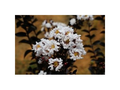 飛雪紫葉紫薇為千屈菜科,小喬木,嫩葉紫紅色,成熟葉片黑紫色,直到落葉;其新枝紫紅色,小枝四棱,老枝褐色,是不可多得的紫葉紫薇新品種。