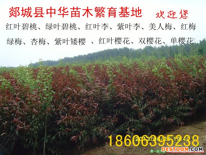 其他綠化苗木:紅梅、綠梅、杏梅、美人梅、臘梅0.5-5公分。紅葉碧桃、綠葉碧桃0.5-6公分。