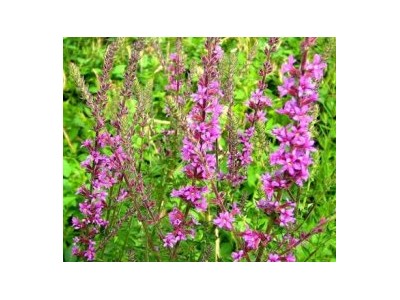 千屈菜,拉丁學名:Lythrum salicaria L.千屈菜科、千屈菜屬多年生草本,根莖橫臥于地下,粗壯;莖直立,多分枝,全株青綠色,略被粗毛或密被絨毛,枝通常具4棱。葉對生或三葉輪生,披針形或闊披針形,頂端鈍形或短尖,基部圓形或心形,有時略抱莖,全緣,無柄?;ńM成小聚傘花序,簇生,因花梗及總梗極短,因此花枝全形似一大型穗狀花序;苞片闊披針形至三角狀卵形,三角形;附屬體針狀,直立,紅紫色或淡紫色,倒披針狀長橢圓形,基部楔形,著生于萼筒上部,有短爪,稍皺縮;伸出萼筒之外;子房2室,花柱長短不一。蒴果扁圓形