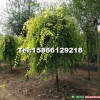 叢生金葉榆4-6個(gè)分枝,分枝4-6cm,干高1.2m,600-700棵。金葉垂榆6-8cm,干高2m,300-400棵。