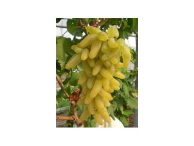 金手指:歐美種,在昌黎8月中上旬開始成熟。該品種果穗巨大,長(zhǎng)圓錐形,著粒松緊適度,平均穗重445克,**大980克,果粒長(zhǎng)橢圓形至長(zhǎng)形,略彎曲,呈菱角狀,黃白色,平均粒重7.5克,**大可達(dá)10克。每果含種子1~2粒,有癟子,無小青粒,果粉厚,極美觀,果皮薄,可剝離,含可溶性固形物18~23%,**高達(dá)28.3%,品質(zhì)佳,商品性極高。不易裂果,耐擠壓,耐貯運(yùn)性好,貨架期長(zhǎng)。該品種抗寒性強(qiáng),成熟枝條可耐-18℃左右的低溫;抗病性強(qiáng),缺點(diǎn)是產(chǎn)量較低。