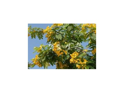 詳細(xì)信息 黃花槐(Sophora xanthantha)由我國傳統(tǒng)國槐與美洲金邊黃槐,雙莢槐雜交育種而成,每年八月開始開花,蕾如金豆、花如金蝶,長勢旺盛,枝繁葉茂、花量大而鮮艷,花色(鴨蛋黃)金黃,故有聚寶黃金樹的美稱。寒霜降臨、盛情不衰,落葉不落花,填補了初冬無觀賞花木的空白,不是春光,勝似春光,品味頗高。黃花槐在亞熱帶常綠,適應(yīng)在長城以南氣溫于零下17度的地區(qū)陸地栽植。 |