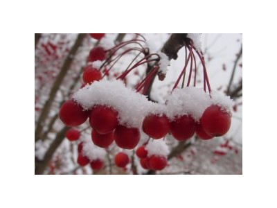 印第安魔力 大灌木或小喬木,高5~7m,樹冠圓呈開放型。葉橢圓形,先端漸尖,鋸齒尖,新葉褐紅色,密布絨毛,似掛白霜。夏季葉色深綠,枝條酒紅色。4月始花,花蕾深粉紅色,逐漸轉(zhuǎn)為淺紫紅色;花瓣較圓闊,花形杯狀;有脈紋?;◤?.5cm。果實(shí)橄欖狀,直徑1cm,6月淺褐紅色,夏季為亮紅,秋季又變成透金的橙紅色。美國(guó)1969年選育品種。開花量大,花期較長(zhǎng),其**具觀賞價(jià)值的是橄欖形的果實(shí),掛果量大,可宿存至冬季。