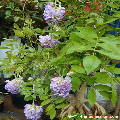 紫藤為長壽樹種,民間極喜種植,成年的植株莖蔓蜿延屈曲,開花繁多,串串花序懸掛于綠葉藤蔓之間,瘦長的莢果迎風搖曳,自古以來中國文人皆愛以其為題材詠詩作畫。在庭院中用其攀繞棚架,制成花廊,或用其攀繞枯木,有枯木逢生之意。還可做成姿態(tài)優(yōu)美的懸崖式盆景,置于高幾架、書柜頂上,繁花滿樹,老樁橫斜,別有韻致。