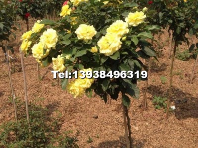 月季樹采用薔薇做砧木嫁接技術(shù),大花新品種月季,分單色和多色。高度80—120厘米。