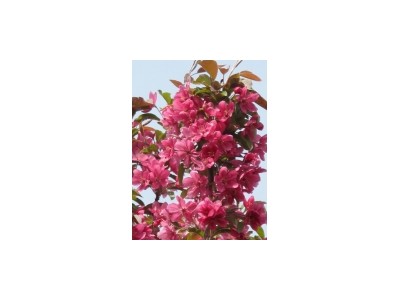 高原之火 喬木.高5-7m.樹型直立.樹冠圓呈開放型.冬季枝干呈暗紅色.春芽3月初萌發(fā).深紫紅色.新生葉片亮酒紅色.成熟葉片逐漸變成帶有紫韻的橄欖綠.葉片長橢圓形.先端急尖.鋸齒鈍.花蕾深紅色.花深粉紅色.顏色艷麗.小花直徑3-3.5cm.非常醒目.6月底果實暗酒紅色.繁盛.果實直徑1.1cm.顏色由暗紅至橘紅.**后到深紅.秋冬季長時間掛在樹上.