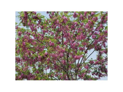 香花槐: 1、苗鑒別方法目前市場售出的假香花槐苗木大致有以下三種: a.紅花洋槐替代香花槐 紅花洋槐與香花槐的花冠同是蝶形,紫紅色,紅花槐每年開一次花,結莢果,用刺槐做砧木嫁接而成。香花槐每年開兩次花,不結莢果,用根段繁殖。 b.香花槐嫁接苗 用香花槐枝條做接穗與刺槐苗作砧木嫁接苗。這類苗木可直接用于工程綠化,但不能做繁殖用。如用該苗的種根繁殖出的苗木全部是刺槐苗。 c.用刺槐或紫穗槐苗摻假。 刺槐苗的刺大而堅硬,紫穗槐無刺,而香花槐有少量小刺。
