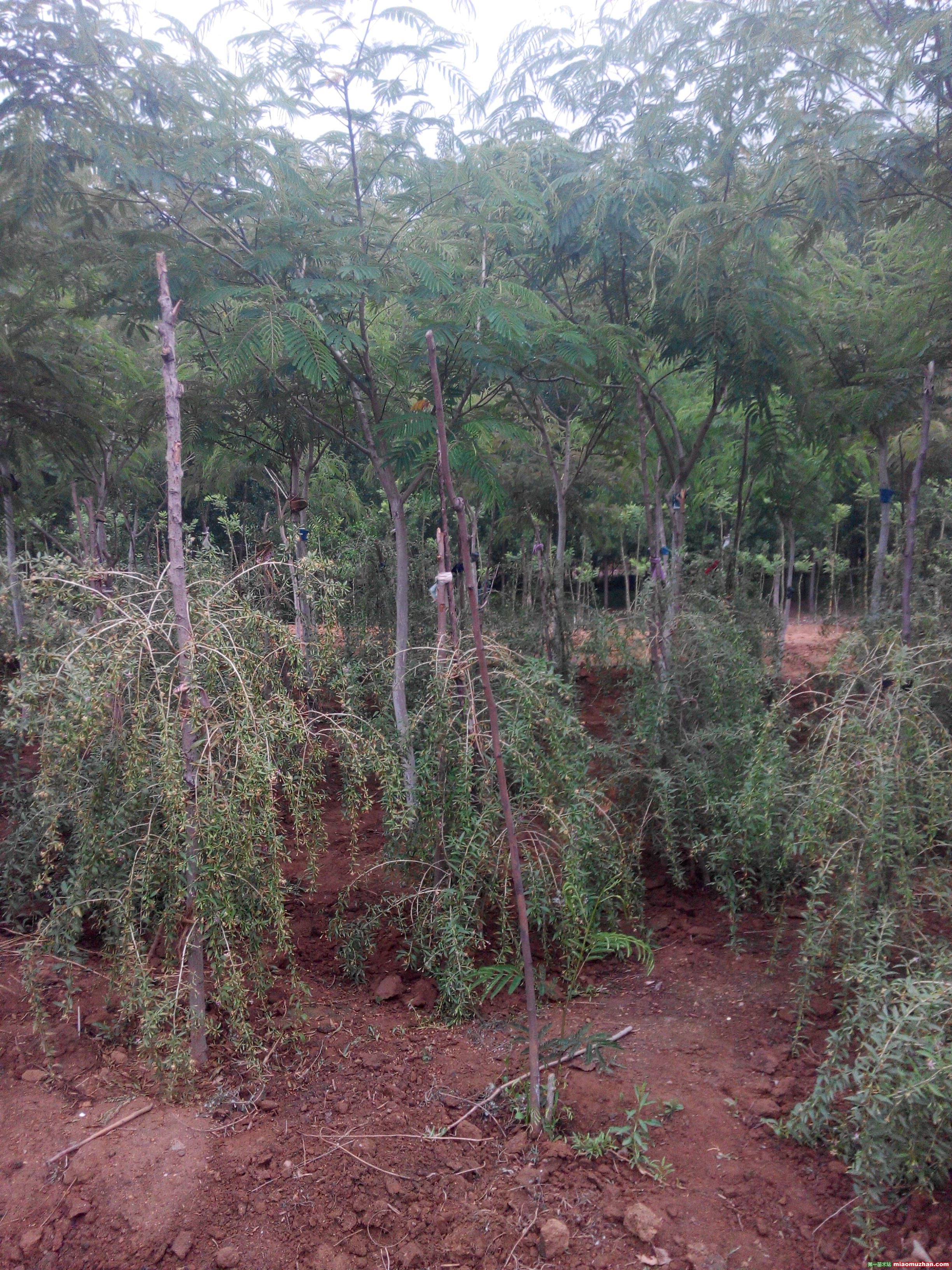 皂角直徑5-8厘米;也有2年生苗;合歡:直徑5-8厘米,米量;枸杞有成年樹和小苗。