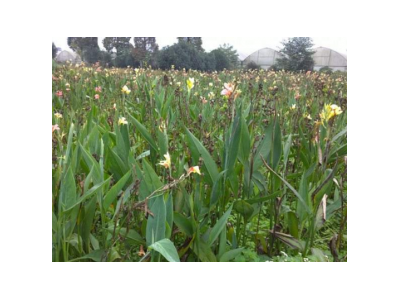 水生美人蕉與美人蕉屬下其它種在形態(tài)和生物學(xué)特性上的*** 區(qū)別是根狀莖細(xì)小,節(jié)間延長,耐水淹,在20 cm深的水中能正常生長。