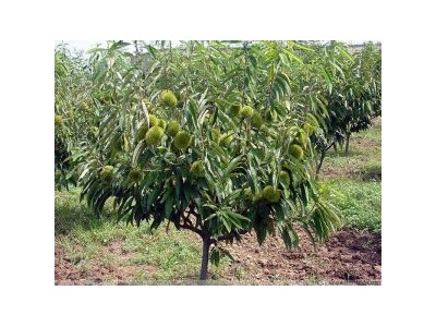 品種選擇應(yīng)以當(dāng)?shù)剡x育的優(yōu)良品種為主栽品種,如炮車2號(hào)、陳果1號(hào)等,適當(dāng)引進(jìn)石豐、金豐、海豐、青毛軟刺、處暑紅等品種。根據(jù)不同食用要求,應(yīng)以炒栗品種為主、,適當(dāng)發(fā)展優(yōu)良的菜栗品種,既要考慮到外貿(mào)出口,又要兼顧國內(nèi)市場需求。同時(shí)做到早、中、晚品種合理搭配。