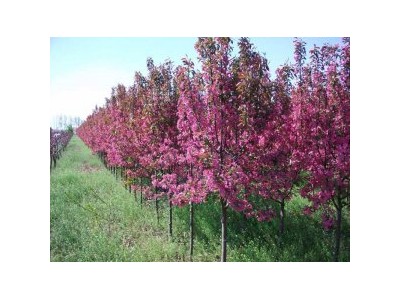 羅賓遜海棠:薔薇科蘋果屬,落葉小喬木,北美海棠系列之一。她的花期3-4月上旬,花色紅艷奪目,花型美麗動人,團團錦簇。在4-5月間又徐徐長出色彩艷麗的新葉,繼而在滿樹紅綠交映的葉叢中點綴出姹紫嫣紅,累累玲瓏的小海棠果,等到7-8月滿樹都是紅透的果子,并且一直掛果到明年的春天。是不可多得的集觀花,觀葉,觀果為一體的觀賞樹種??勺鲂⌒托械罉洌m用于公園、會所等開放綠地,也可植于較開闊的庭院。 北美海棠印第安魔力介紹:樹態(tài);樹冠寬園,分枝自由開張,成樹枝條微垂?;ㄉ槐瓲钚』?。花蕾濃紅,花色前期玫紅,后期雪青粉,花芳香,布滿枝條。華北四月中旬盛花,冷艷俊秀。葉片;新葉茶紅,與花同期;成葉墨綠,葉小健美。秋葉橙紅,近于果色,紅亮滿園。果實;橄欖形小果,幼時綠中透紫,初夏紫色加重,而后亮紅,秋果轉(zhuǎn)為橙紅、橙黃色。冰雪后部分果實轉(zhuǎn)褐。果量極大,宿存期至1月,后被鳥食。特征;綜合適應(yīng)性優(yōu)異,基本無病害侵擾。幼樹需適當整形,促使樹冠圓滿。自4月至嚴冬季節(jié)色彩持續(xù),多變化,為園林中的優(yōu)秀品種,山東地區(qū)表現(xiàn)優(yōu)秀。應(yīng)用;適合較寬敞的庭院、樓閣前及綠地廣場孤賞或群植。