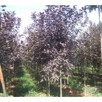 加拿大紅櫻:薔薇科,觀葉喬木。產(chǎn)美國,葉片色彩富于變化,單葉、互生,先端闊大成橢圓;4—12cm長,葉寬相當(dāng)于葉長的2/3,突然尖細(xì);基部寬楔型成圓形;葉緣細(xì)鋸齒壯;葉面黑綠。葉被淡海綠色或灰綠;光滑,腋脈有毛;葉柄長1.2—2cm,落葉期晚。加拿大紅櫻高7—10米。冠寬6—8米;美國的冠軍樹高26米,寬15米,是小喬木或大灌木,枝條彎曲,細(xì)枝條形垂形的橢圓形樹冠。河南錦繡花木園藝場(chǎng)有引種,花白色,0.8cm直徑,4—5月開;2.5cm總狀花序,紫紅色果。耐寒,能耐—40度左右的低溫。耐旱,耐貧瘠。是低溫帶彩化,美化的優(yōu)良觀賞樹種,也是目前我國彩化的唯一喬木樹種。