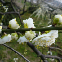 綠色梅花別稱綠萼梅、白梅花、綠梅花,落葉喬木,小枝多綠色,枝端尖刺狀,無毛,葉互生,寬卵形至卵形,長(zhǎng)4-10cm,寬3-5.5cm,先端長(zhǎng)漸尖,基部寬楔形或近圓形,邊緣有細(xì)鋸齒,下面色較淺,嫩時(shí)兩面有毛,老時(shí)僅下面脈上有柔毛;葉柄有毛,托葉早落。花1-2朵簇生,先葉開放,有香氣,萼片5,常帶紫紅色,花后常不反折;花瓣5,白色、紅色或淡紅色,有的重瓣;雄蕊多數(shù),心皮1,密被短柔毛。核果近球形,兩邊扁,有縱溝,直徑2-3cm,熟時(shí)黃色,有短柔毛。花期3月,果期5-6月。