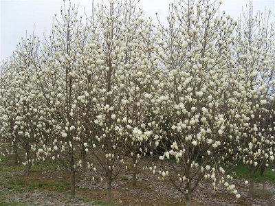 名稱:白玉蘭 別名:玉蘭花,荷花玉蘭 科屬:木蘭科,木蘭屬。 種類:落葉喬木/行道樹/春季觀花類苗木 土球:春秋冬季1:7,夏季1:8 分枝點:1.2~1.5,1.8~2米,可選 生長溫度:18~31度 育苗方法:嫁接 移栽季節(jié):四季 產(chǎn)地分布:江蘇,安徽,河北,山東,江西,福建,廣東等地。 白玉蘭是經(jīng)濟價值很高的苗木,它對環(huán)境的適應(yīng)性很強,從廣東到河北從江蘇到山西,各種季節(jié)氣候都能生長開花,分布廣泛表現(xiàn)良好。秋冬季節(jié)孕蕾,經(jīng)過一冬天的和早春的積累,每年春季3月4月白玉蘭就開花了,在長樹葉前開花了,花朵直徑8~14厘米,花瓣12~14枚,顏色青白色。白玉蘭樹葉較大,長度9~18厘米,寬度8~16厘米,橢圓形近圓形,葉脈明顯,質(zhì)地較厚。白玉蘭樹皮,小枝灰白色有斑點,老枝和樹干顏色灰色或白色。 全年幾乎無病蟲害,抗性極好,生長不擇土壤,黑土、黃土、砂石土、粘土都能生長,但是苗圃種植為方便起挖土球,我們一般選擇種在可以帶起土球的地塊??购砸苍诒狈降玫綄嶋H種植驗證,河北張家口冬季零下30度,白玉蘭可自然越冬,通常落葉樹種耐寒性都非常好。夏沫秋初防治白玉蘭樹葉黑斑病,此時要注意防治。城市綠化建設(shè)中,被廣泛用在綠化公園,道路,小區(qū),河畔等等。