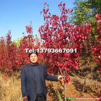 彩葉豆梨:落葉性喬木,高可達8米以上,樹皮灰褐色,枝條尖削度小,無毛,冬芽有細毛,節(jié)間長1.3-3.5公分,葉廣卵形至卵形,長4-8公分,寬3-6公分,先端漸尖,罕短突尖。葉基楔形,鈍齒緣。葉柄長1.5-3公分,10月下旬至落葉期間葉片呈鮮紅色,蠟質(zhì)、光亮?;ㄐ蚣拜嗤矡o毛,花白色,雄蕊約20枚,花大,花期長,抗霜力較強,果球星,深褐色,萼脫落,子房2-3室,該樹種生長快、抗鹽堿,耐水濕,在淺流水中20天亦不致凋萎,含鹽量小于0.4%的礫質(zhì)砂土,低沙洼地、堿地生長良好,壽命可達200年以上,是目前最有發(fā)展前途的彩葉樹種。
