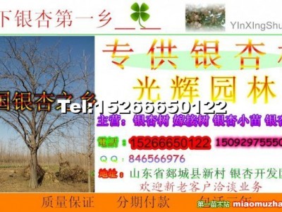 山東省光輝園林銀杏苗木低價大量出售銀杏樹 嫁接樹銀杏小苗 銀杏種子 大槐樹 大水杉 銀杏樹價格8公分130元、9公分160元、10公分230元、12公分260-290元、15公分350-650元、18公分1000-1300元、20公分1800-2300元、其他價格電議 銀杏小苗瘋狂搶購中 當年苗一般1.5角壯苗3.5角、二年苗一般1.6元壯苗2.5元其他價格面議、銀杏種子2.5元-3元/斤以上量大價優(yōu) 指樹挖樹 包辦手續(xù) 貨到付款 聯(lián)系電話 15266650122 15092975550