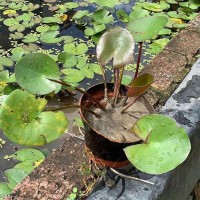 【睡蓮苗種植管理】選用無孔營養(yǎng)缽,高30cm,口徑40cm,栽種方法及營養(yǎng)土如缸載,填土高度在25cm左右,栽種完成后沉入水池,水池水位控制在剛剛淹沒營養(yǎng)缽為宜,隨之生長逐漸增加水位。此方法優(yōu)點在于越冬容易,只需冬季增高水位,使睡蓮頂芽保持在冰層以下即可越冬,缺點是管理時必須進入水池,略感不便。