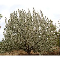 八棱海棠樹體長勢快,壽命長。幼樹當(dāng)年就開花、掛果,產(chǎn)量逐年倍增。八棱海棠樹的枝條細(xì)長、均勻且柔軟,樹型十分優(yōu)美.它在4月份開花,剛出的花骨朵呈紅色,慢慢地開展由紅色變粉紅色,漸漸的再由粉紅色變?yōu)榉郯咨ò曛泄瘘S色的花蕊,海棠花開得**艷**展的時(shí)候則變?yōu)榘桌锿钢G色的花朵。開花期間整個(gè)樹上花朵密密層層,和樹葉擠在一起不留一點(diǎn)兒縫隙,散發(fā)著濃甜的香氣,距離海棠樹100米處就可聞到濃厚的花香味,讓人心曠神怡!果實(shí)生育期120天左右。皮薄,單果重12克左右,果皮色澤“鮮紅奪目”,果肉黃白色品質(zhì)好,果香馥郁,鮮食酸甜香脆。如果作為觀賞風(fēng)景樹,果實(shí)沒有被栽掉,一直到冬季樹葉落光后還是滿樹的鮮紅海棠果,直到來年樹枝生葉開花時(shí)海棠果逐漸退掉.